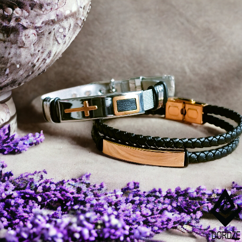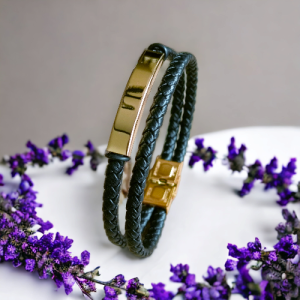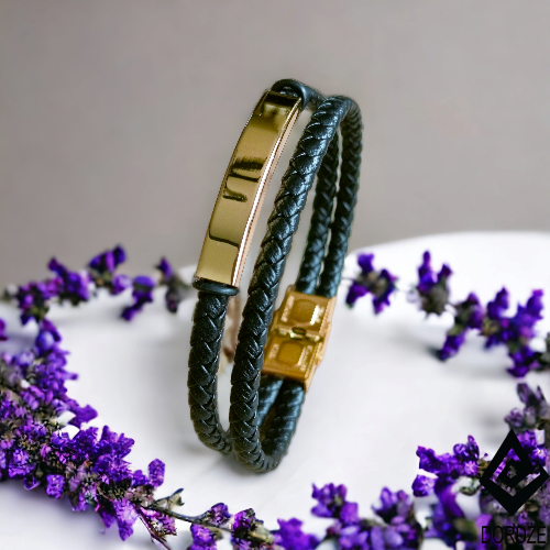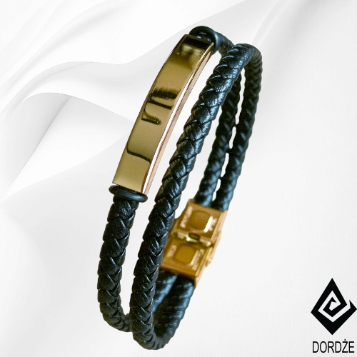 Męska Bransoleta Czarny Rzemień- Złot - Silna Ochrona, Skuteczne pokonywanie przeszkód