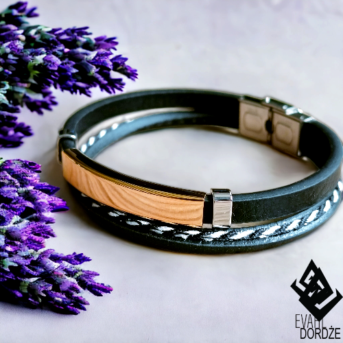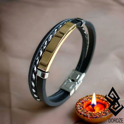 Męska Bransoleta Czarny Rzemień- Złot - Silna Ochrona, Skuteczne pokonywanie przeszkód