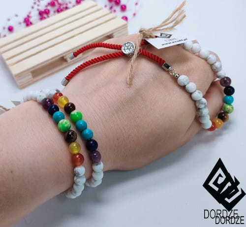BRANSOLETKA Biały Howlit CZAKRY – to harmonijna praca Twoich Czakr oraz przyciąganie Pozytywnej Energii Spełnienia.