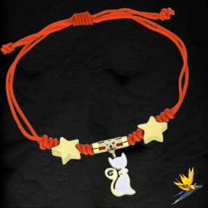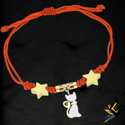 CZERWONA Bransoletka Ochronna - Złoto- Biały KOT