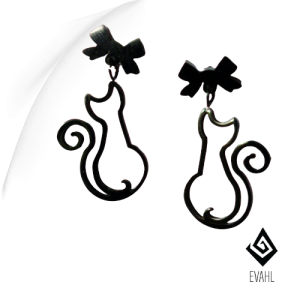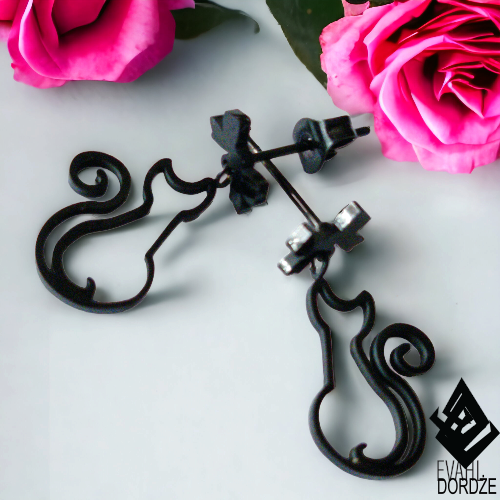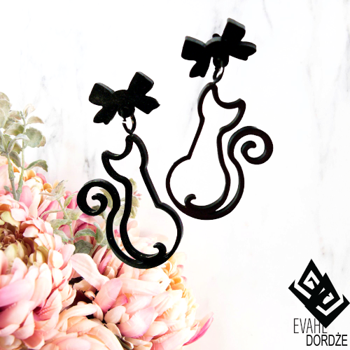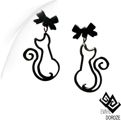 Czarne kolczyki KOT z kokardą - Pomyślność, Zdrowie, Sukces