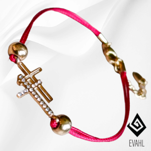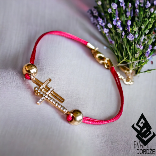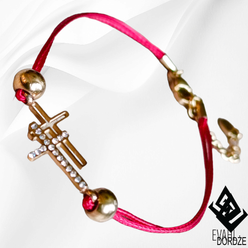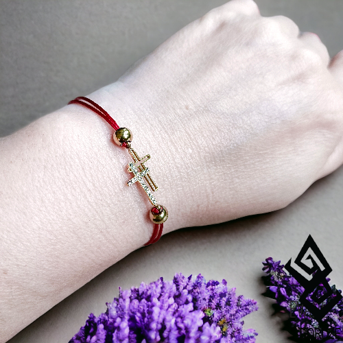 Czerwona Bransoletka Ochronna – Złota, 2 Krzyże , Cyrkonie