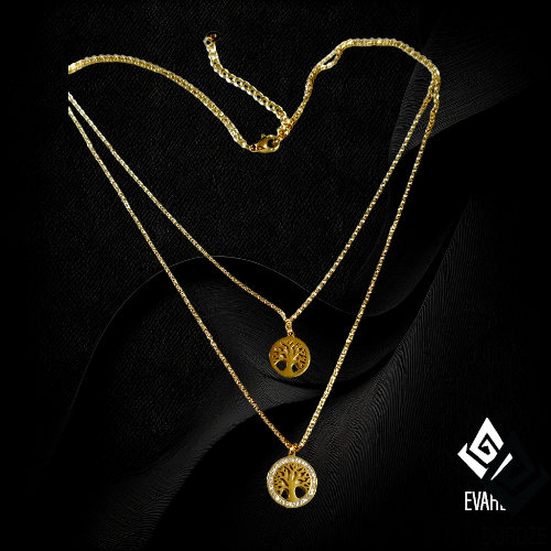 Naszyjnik podwójny, złoty – DRZEWKO SZCZĘŚCIA – Zdrowie, Dostatek, Bezpieczeństwo