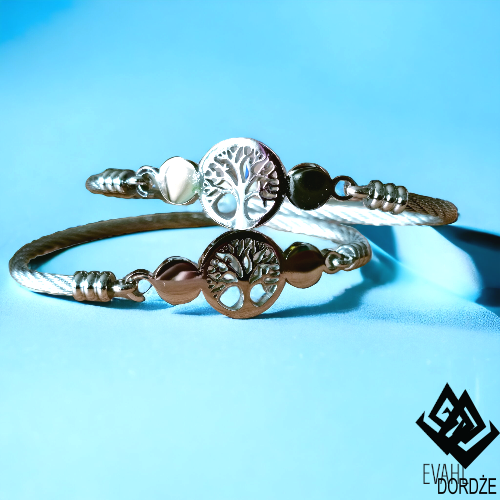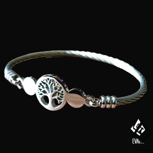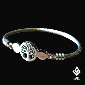 Bransoletka Drzewko Szczęścia w kolorze srebra wykonana jest z wysokiej jakości antyalergicznej stali chirurgicznej.
