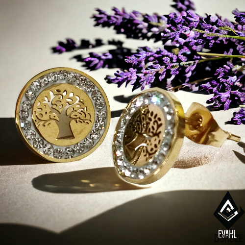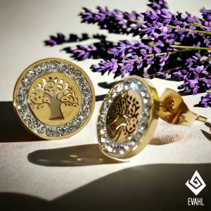 Kolczyki Drzewko Szczęścia w kolorze złota wykonana jest z wysokiej jakości antyalergicznej stali chirurgicznej.